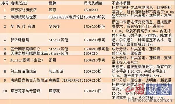 线上抽查不合格羽绒被名单 |